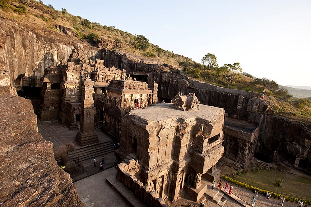 Ellora demuestra la tolerancia religiosa en la India medieval con templos budistas, hindúes y jainistas coexistiendo. El templo de Kailasa es la mayor estructura monolítica del mundo. Las técnicas de excavación son excepcionales.