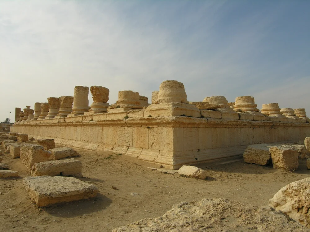 Palmira prosperó como oasis caravanero de la Ruta de la Seda entre los siglos I y III d. C., alcanzando su apogeo bajo la reina Zenobia, que desafió brevemente a Roma. Su calle columnada, el Templo de Bel y las torres funerarias mezclaban tradiciones grecorromanas, iranias y locales en un estilo único en el mundo antiguo. El Estado Islámico destruyó partes del sitio en 2015-2016; los esfuerzos de restauración internacional continúan.